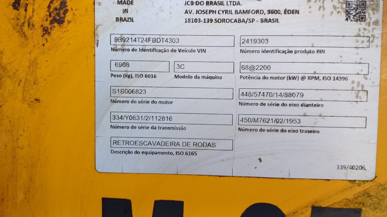 RETROESCAVADEIRA DE RODAS JCB (SUCATA)