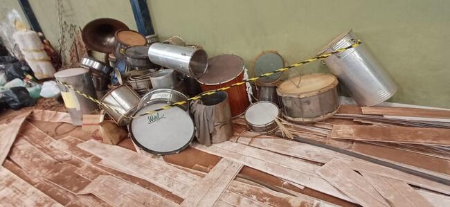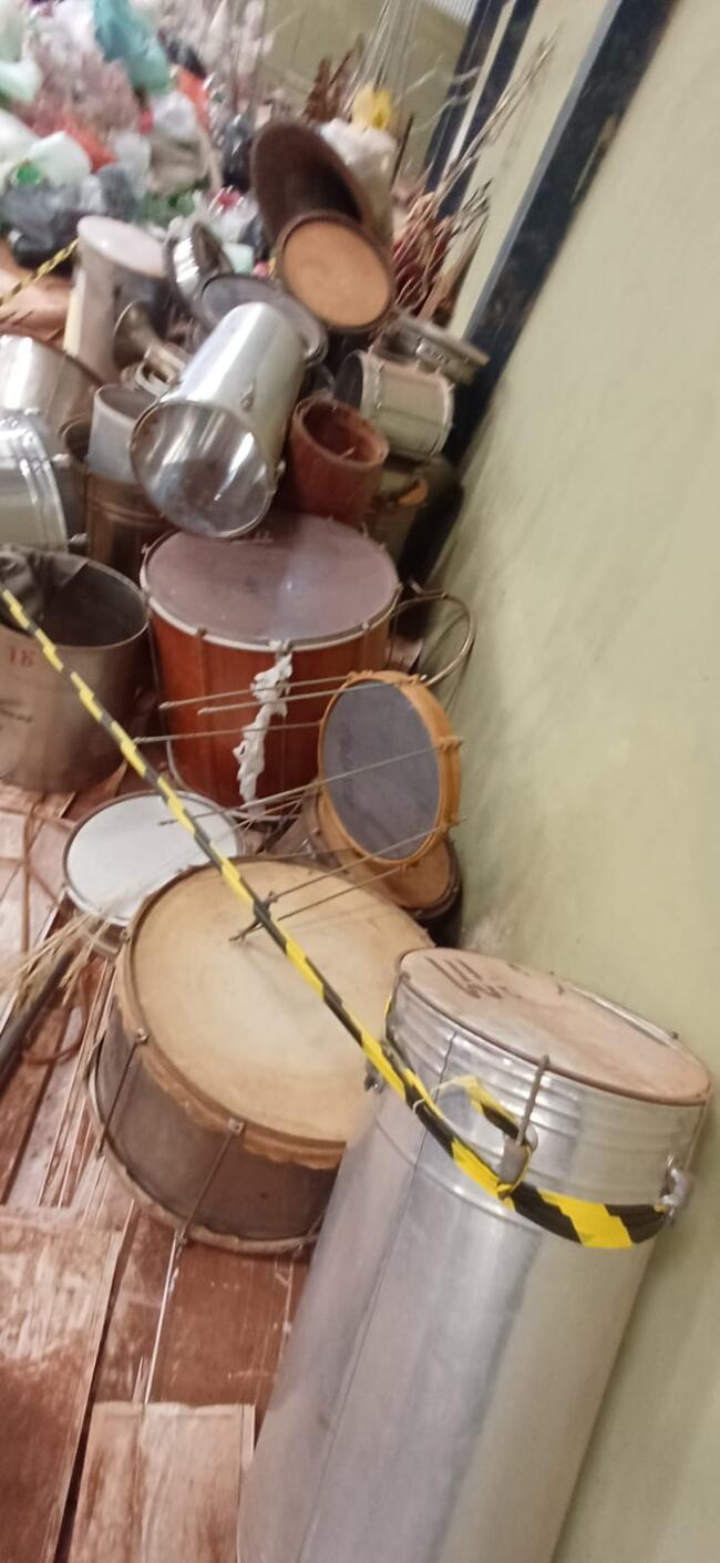 Compostos por instrumentos de sopro, cornetas e trombones, instrumentos de percussão, como bombo, caixa e surdos e acessórios como pratos e outros.