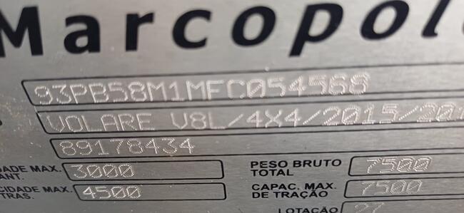 MARCOPOLO VOLARE V8L 4X4 EO, ANO/MOD 2014/2015, DIESEL (DIR A DOCUMENTO)