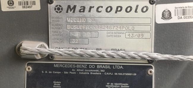 ÒNIBUS M. BENZ MPOLO VICINO, DIESEL, ANO/MOD 2009/2010, LOTAÇÃO 31P (DIR A DOCUMENTO)