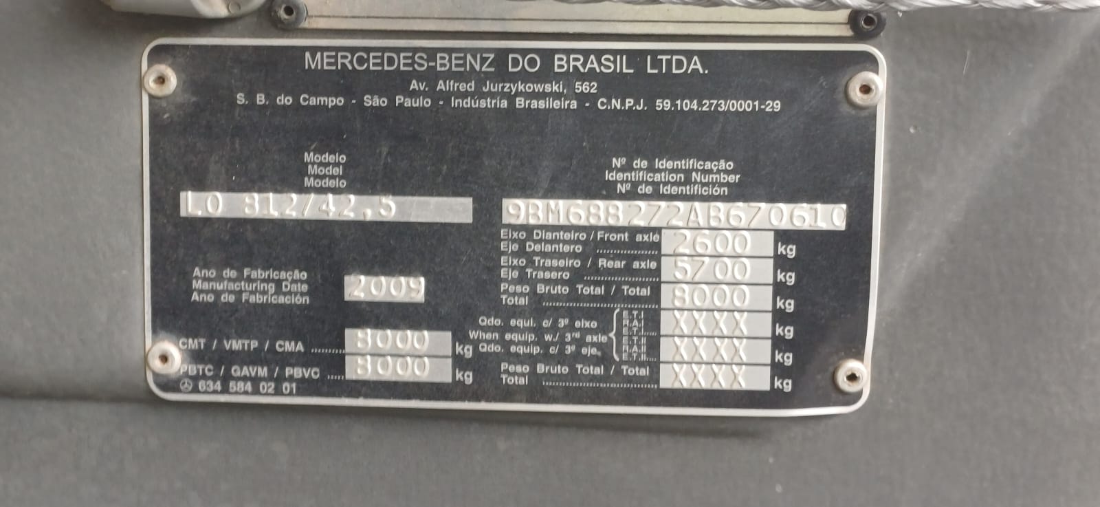 CHASSI: 9BM***********0610